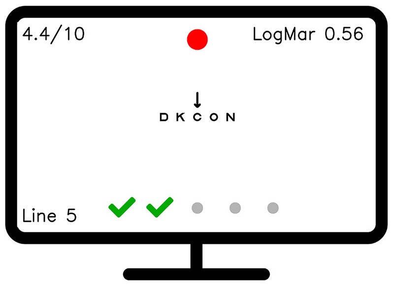 | Bảng chữ | Bảng chữ cái Sloan, bảng chữ C (cả 2 phiên bản) Bảng chữ E, bảng hình LEA, bảng loạn thị (chỉ bản Pro). 5 chữ mỗi hàng. |